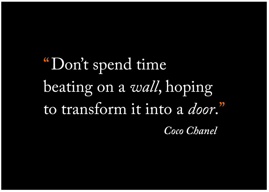 Symbolised by orange quotation marks, l visualise the quote as being beset with a pair of jeweled earrings. l wonder if Coco Chanel would view this as wearing just the right amount of accessory?