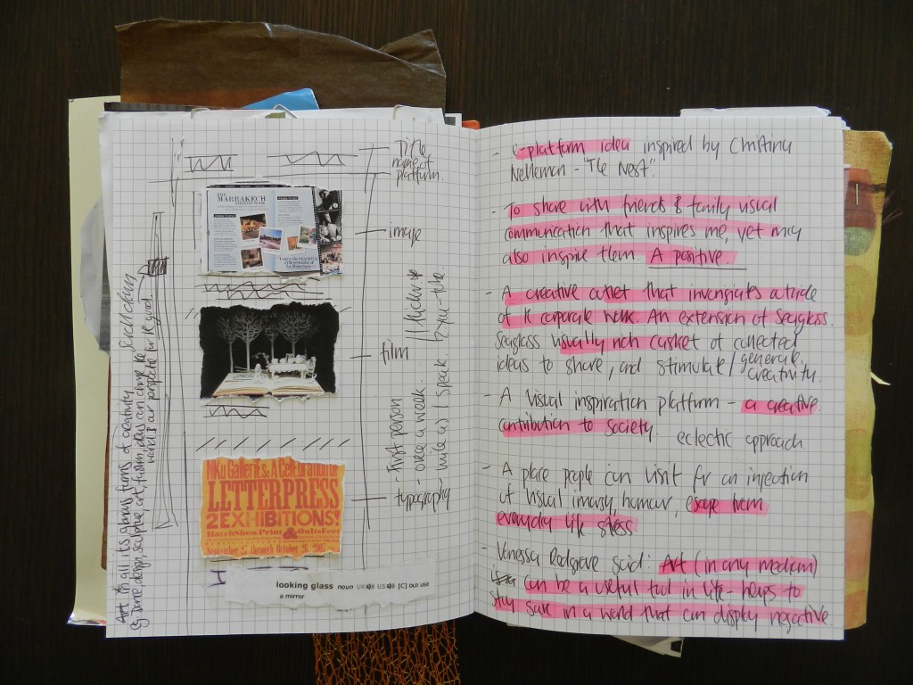 Looking Glass has come a long way since this initial drawing, and l’m delighted with the direction that it has taken – reflecting the many diverse forms of creative inspiration, that l have had the fortunate to discover, thus far on my journey.